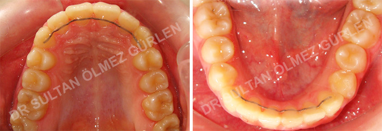 After orthodontic treatment, the teeth have a tendecy to move their previous positions which is called relapse. In severe discrepancies this tendecy is higher. After removal of the fixed orthodontic appliances a fixed or removable retainer should be used. With full cooperation in wearing retainers will prevent your teeth shift.